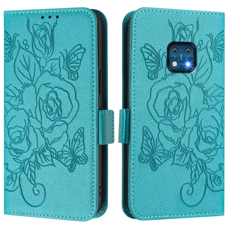 Funda de Cuero Antirrobo Rfid para Nokia Xr20 con Diseño de Rosa en Relieve (Azul Claro)