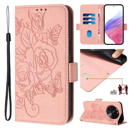 Funda de Cuero Antirrobo Rfid con Relieve En Rosa para Oppo Find X6 Pro (Rosa)