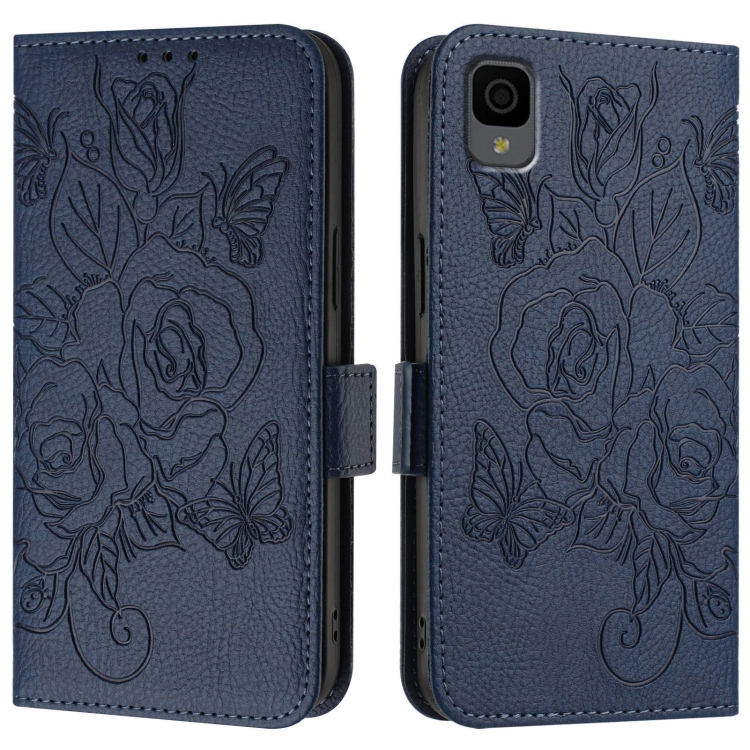 Funda de Cuero Antirrobo RFID con Relieve para TCL 30Z T602Dl (Azul Oscuro)
