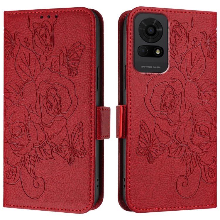 Funda de Cuero Antirrobo RFID con Relieve para TCL 50 Le 5G (Rojo)