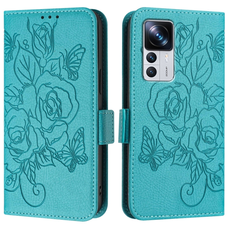 Funda de Cuero Antirrobo Rfid con Relieve Rosa para Redmi K50 Ultra / Xiaomi 12T / 12T Pro (Azul Claro)
