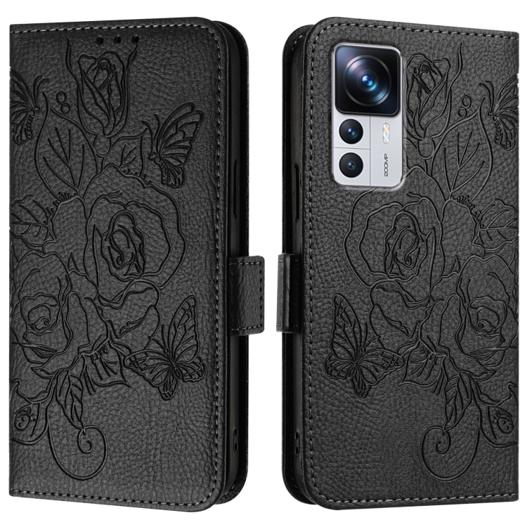 Funda de Cuero Antirrobo Rfid con Relieve Rosa para Redmi K50 Ultra / Xiaomi 12T / 12T Pro (Negra)