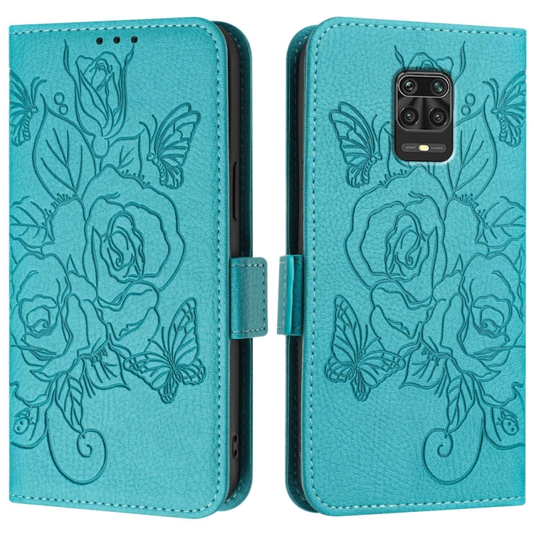 Funda de Cuero Antirrobo Rfid con Relieve Rosa para Redmi Note 10 Lite/Xiaomi Poco M2 Pro (Azul Claro)
