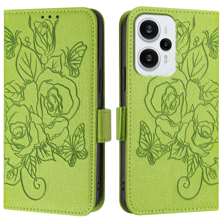 Funda de Cuero Antirrobo Rfid con Relieve Rosa para Redmi Note 12 Turbo 5G/Xiaomi Poco F5 (Verde)