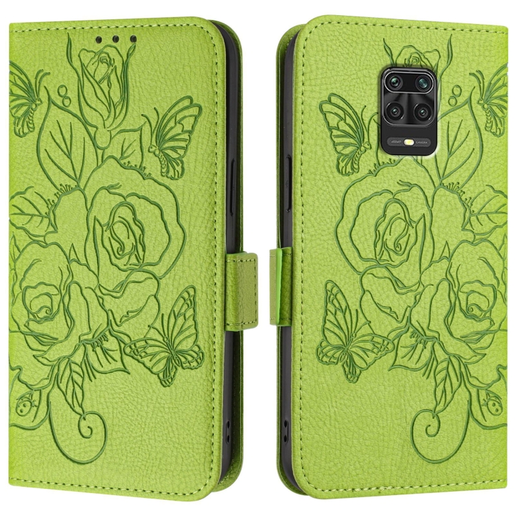 Funda de Cuero Antirrobo Rfid con Relieve Rosa para Redmi Note 9 Pro 4G / 9S 4G / 9 Pro Max (Verde)