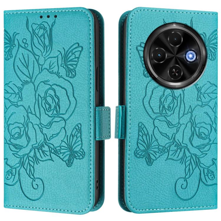 Funda de Cuero Antirrobo RFID con Relieve Rosa para Tecno Spark 30C 5G y Pop 9 5G (Azul Claro)
