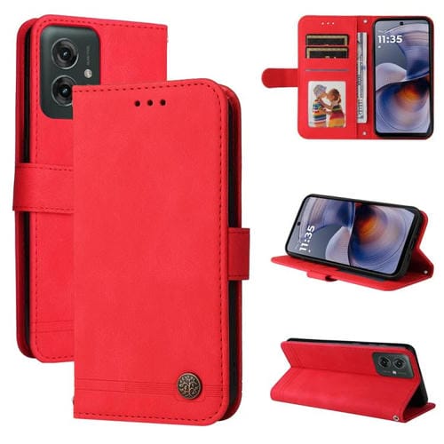 Funda de Cuero para Motorola Moto G55 con Botones de Metal y Diseño Árbol de la Vida (Rojo)
