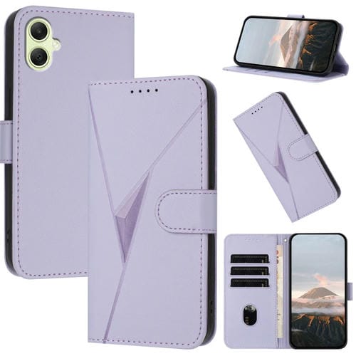 Funda de Cuero Samsung Galaxy A05 con Cierre de Hebilla y Diseño de Triángulos (Morado Claro)