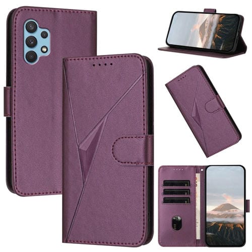 Funda de Cuero Samsung Galaxy A32 4G Cierre de Hebilla Diseño Triangular (Morado Oscuro)