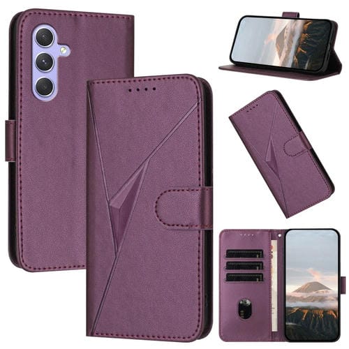 Funda de Cuero Samsung Galaxy A55 5G con Cierre de Hebilla y Diseño Triangular (Morado Oscuro)