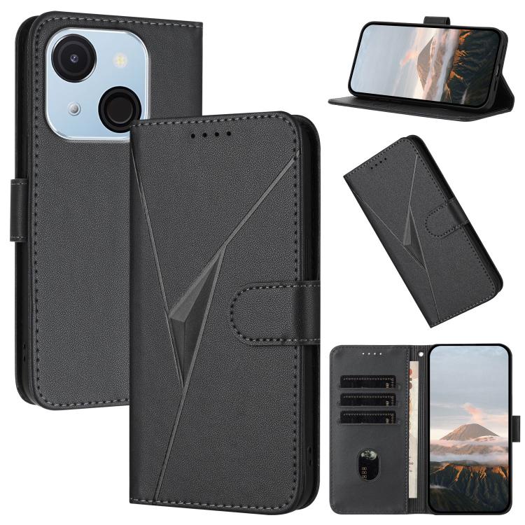 Funda de Cuero con Cierre de Hebilla y Diseño Triangular para Itel A50C (Negra)