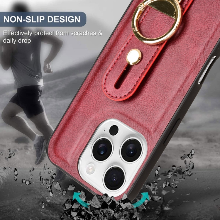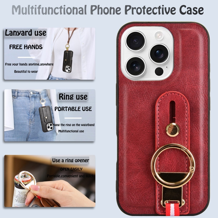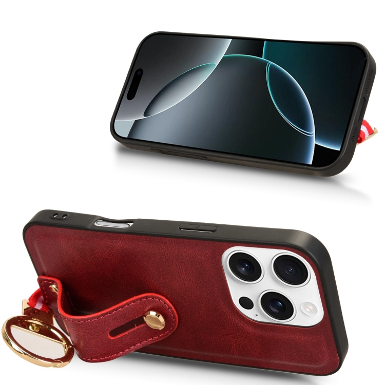 Funda de Cuero con Correa para la Muñeca para iPhone 16 Pro Max (Rojo)