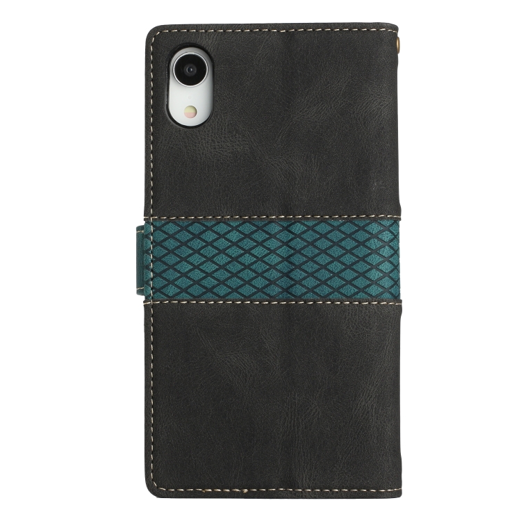 Funda de Cuero para iPhone Xr con Costuras En Cuadrícula y Cordón (Negro)