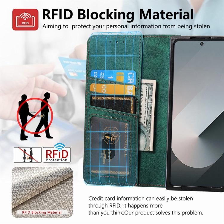 Funda de cuero con cremallera magnética MagSafe retro para Samsung Galaxy Z Fold 7 5G (verde)