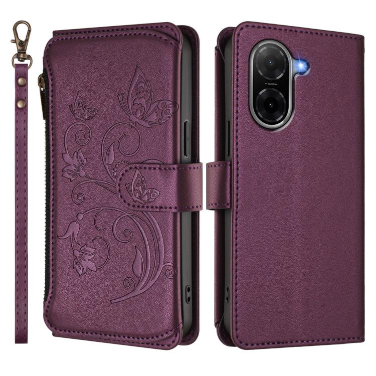 Funda de cuero con cremallera para Redmi A5 4G (171,7 mm) y Xiaomi Poco C71 (morado oscuro)