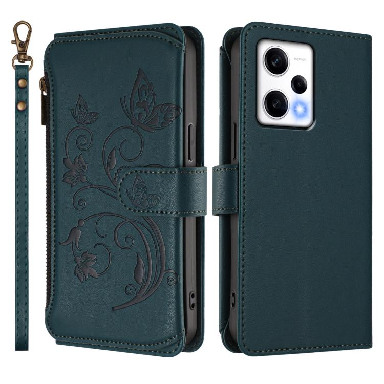 Funda de cuero con cremallera para Redmi Note 12 Pro 5G Global/Speed Butterfly Love Flower (verde oscuro)