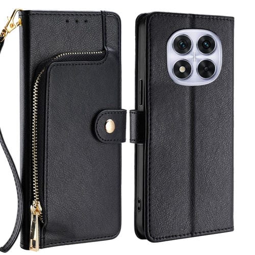 Funda de Cuero con Cremallera para Redmi Note 14 Pro 5G (Negra)