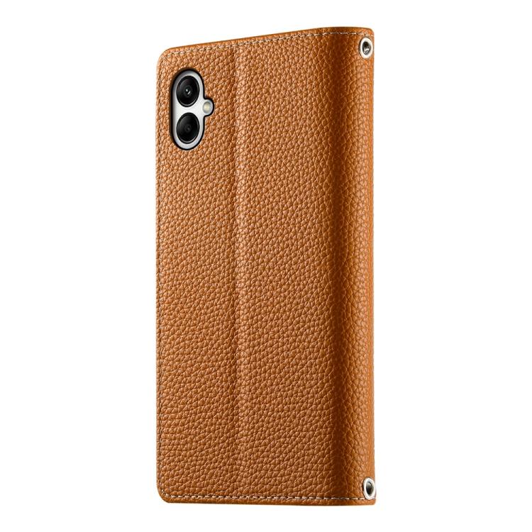 Funda de cuero con cremallera para Samsung Galaxy A05, con costuras, para múltiples tarjetas y correa corta (marrón)