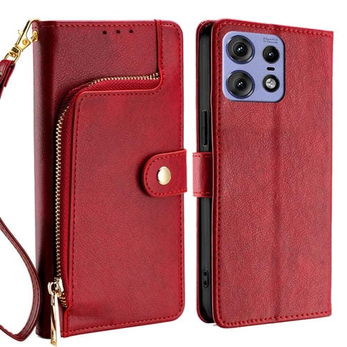 Funda de Cuero con Cremallera para Motorola Edge 50 Pro 5G (Rojo)