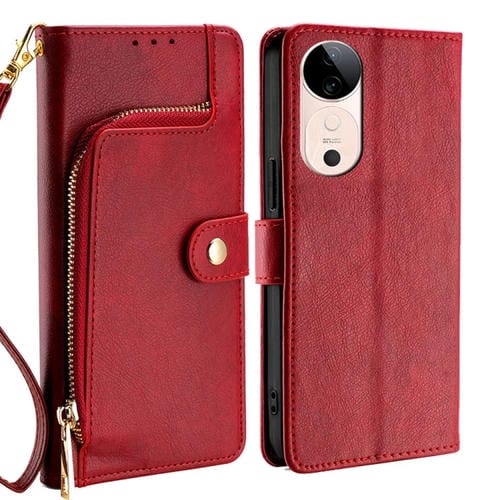 Funda de Cuero con Cremallera para Teléfono Vivo S19 (Rojo)