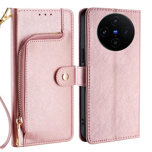 Funda de Cuero con Cremallera para Teléfono Vivo X100S (Oro Rosa)