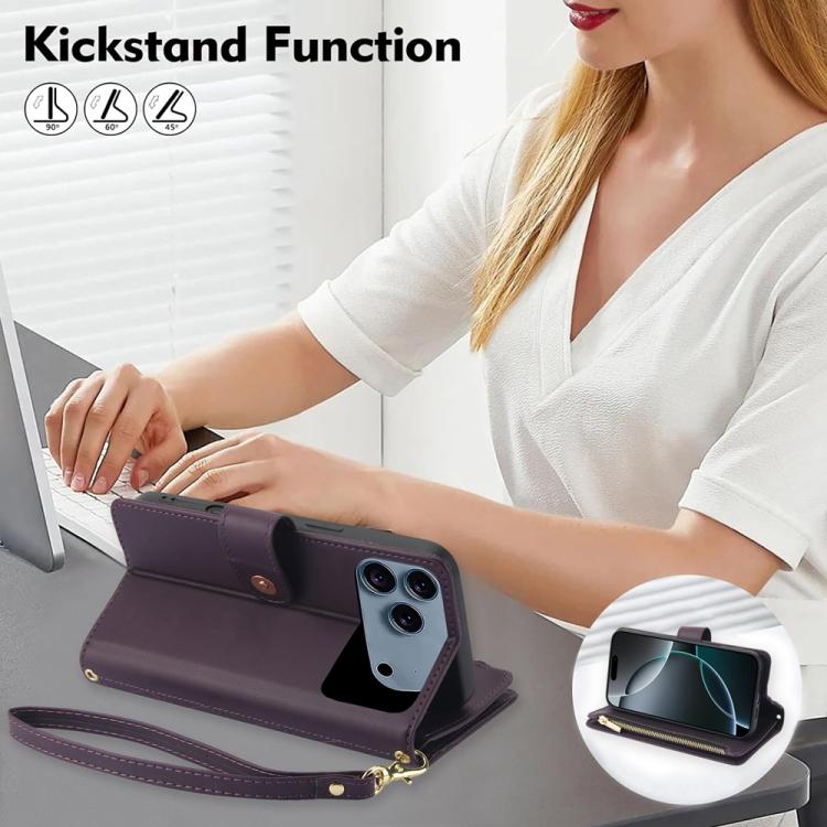 Funda de cuero con cremallera y cordón para iPhone 17 Pro YM016 (morado oscuro)