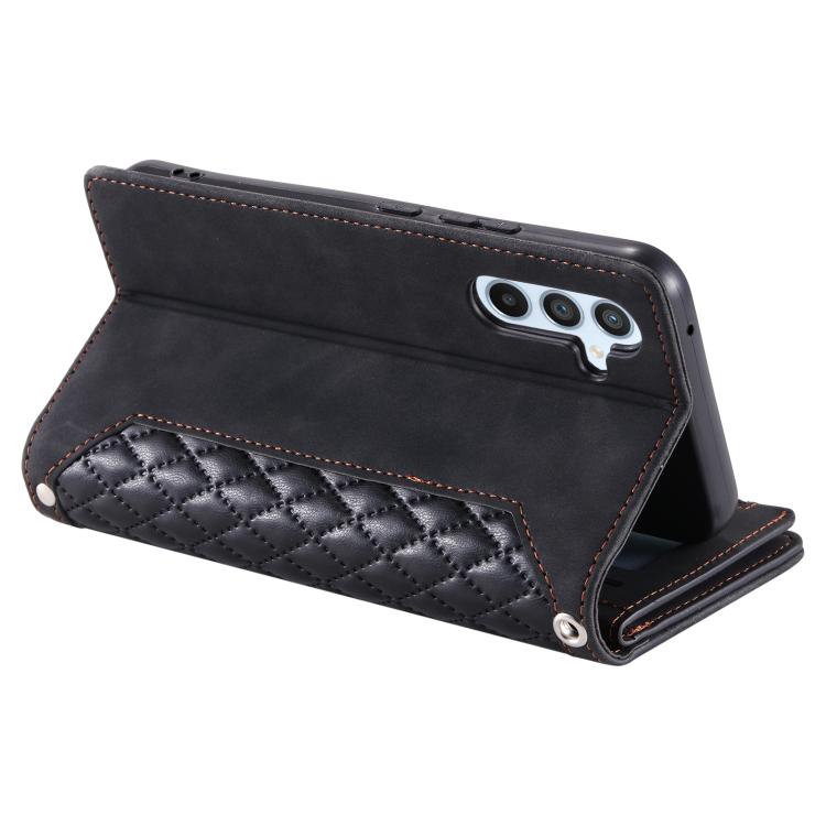 Funda de cuero con cremallera y cordón para Samsung Galaxy A17 5G (negro)