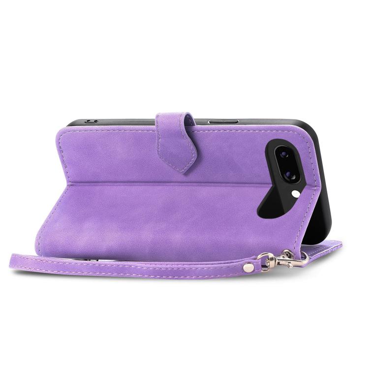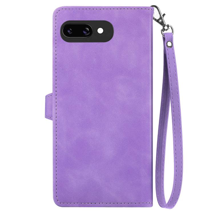 Funda de Cuero con Cremallera y Flores en Relieve para Google Pixel 9A (Morado)