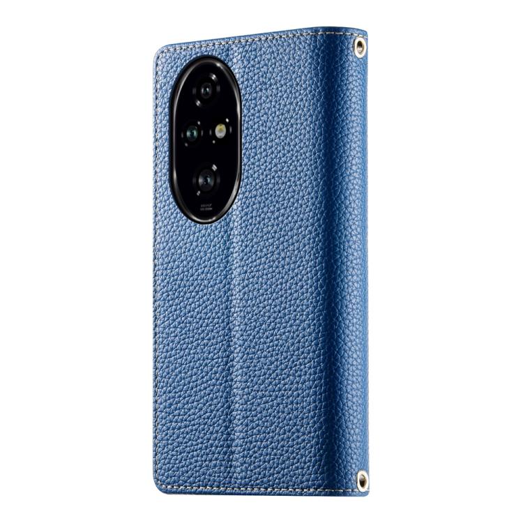 Funda de cuero con cremallera y múltiples tarjetas para Honor 200 Pro, con costuras y correa corta (azul oscuro)