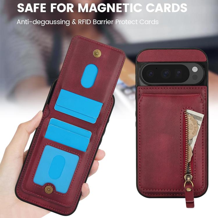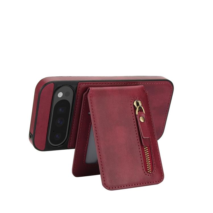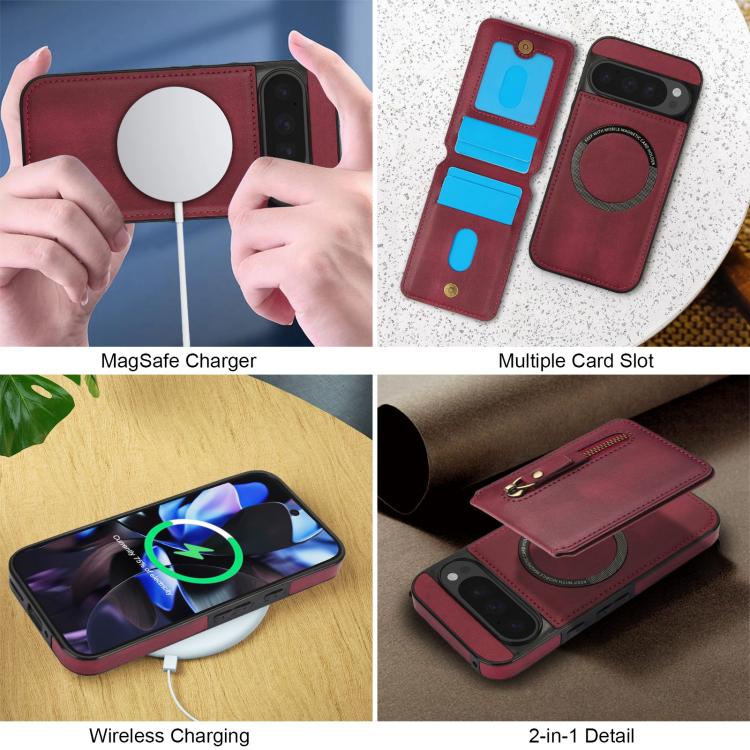 Funda de Cuero con Cremallera y Parte Trasera Dividida Magsafe para Google Pixel 9/9 Pro (Rojo)