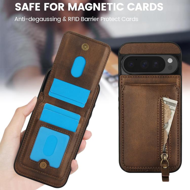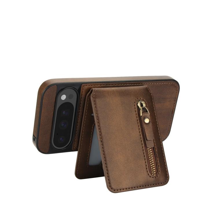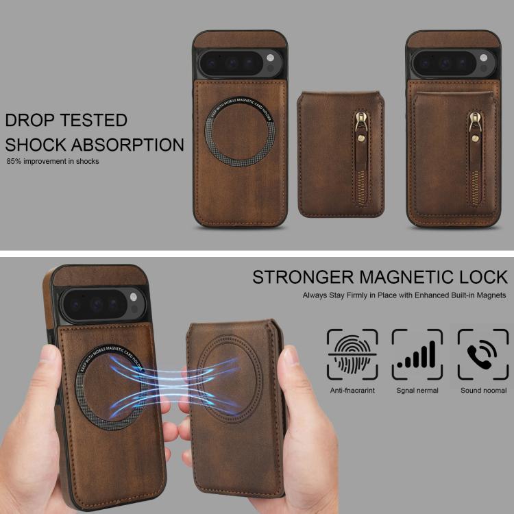 Funda de Cuero con Cremallera y Parte Trasera Magsafe Dividida para Google Pixel 9/9 Pro (Marrón)