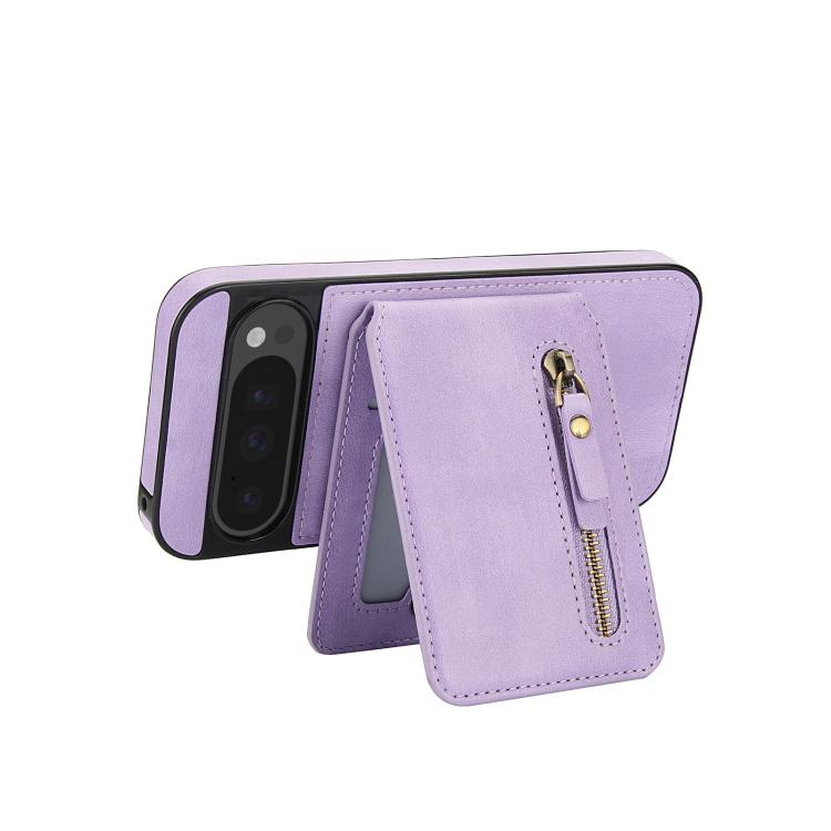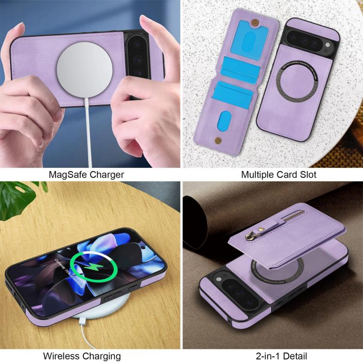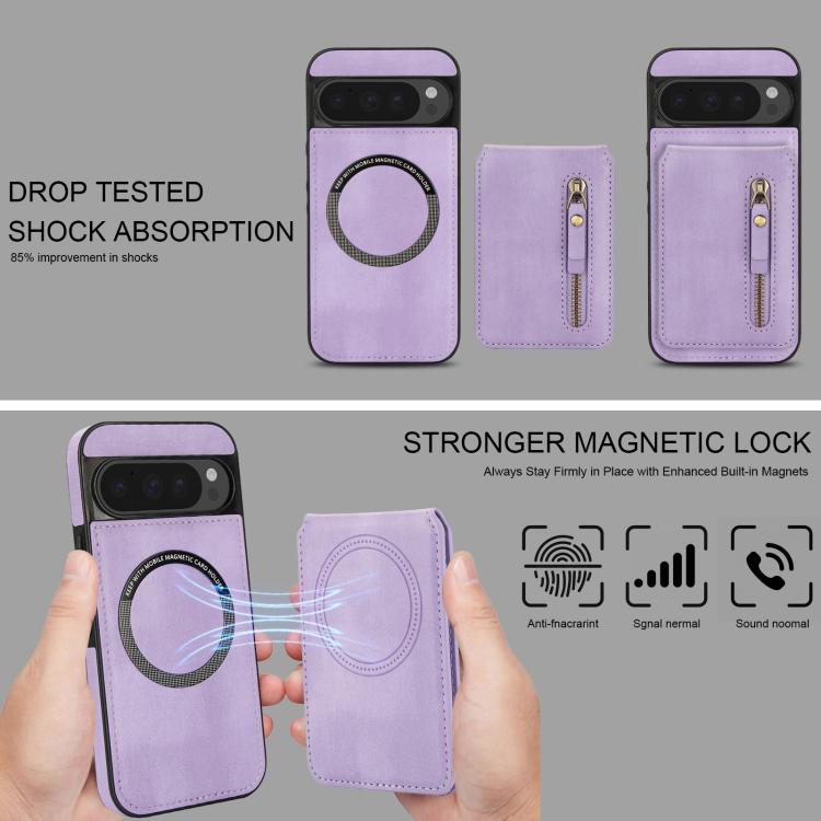 Funda de Cuero con Cremallera y Parte Trasera Magsafe para Google Pixel 9/9 Pro (Morado)