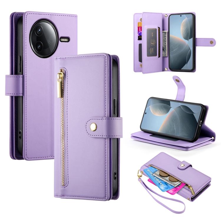 Funda de cuero con cremallera y ranura para tarjetas para Redmi K80/K80 Pro (morado)