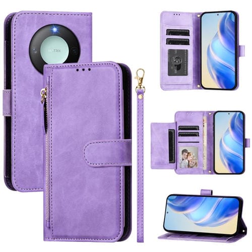 Funda de Cuero con Cremallera y Ranuras para Tarjetas Honor X60/X9C (Morado)