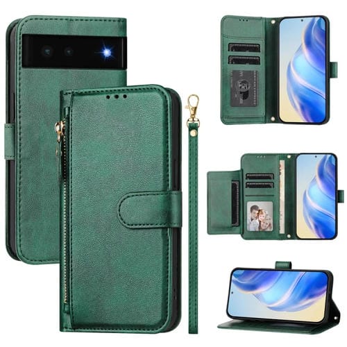 Funda de Cuero con Cremallera y Ranuras para Tarjetas para Google Pixel 6 (Verde)