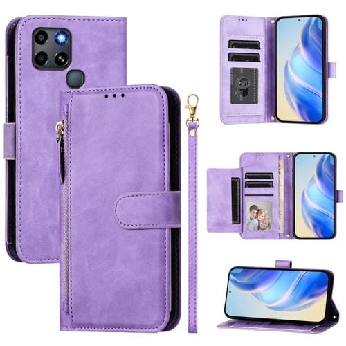 Funda de Cuero con Cremallera y Ranuras para Tarjetas para Infinix Smart 6 / Smart 6 Plus (Morado)