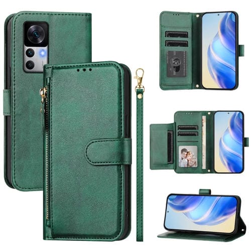 Funda de Cuero con Cremallera y Ranuras para Varias Tarjetas para Redmi K50 Ultra (Verde)