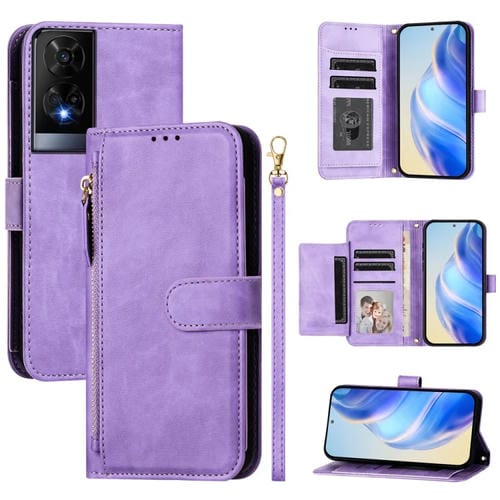 Funda de Cuero para TCL 50 Xe con Cremallera y Ranuras para Tarjetas (Morado)