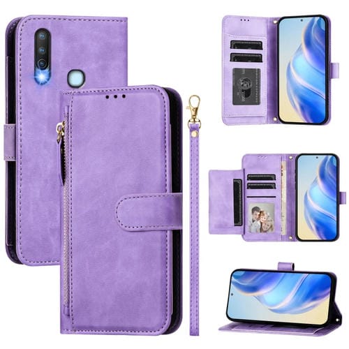 Funda de Cuero con Cremallera y Ranuras para Varias Tarjetas para Vivo Y17/Y15/Y12/Y11 (Morado)