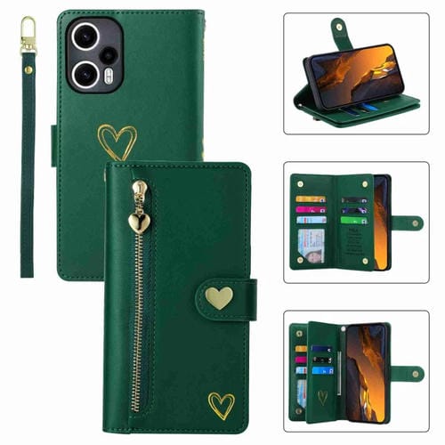Funda de Cuero con Cremallera y Ranuras para Varias Tarjetas para Xiaomi Poco F5 Pola Love (Verde Oscuro)
