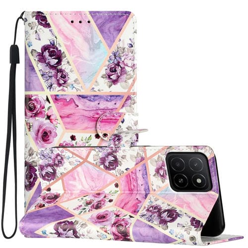 Funda de Cuero para Honor X5B 4G con Dibujo a Color (Mármol Morado)