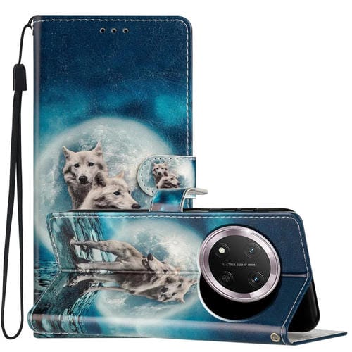 Funda de Cuero para Honor X9C 5G con Dibujo a Color (Twin Wolves)