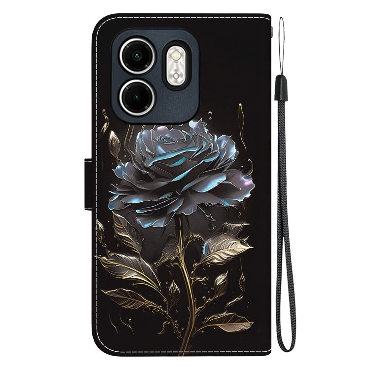 Funda de Cuero con Dibujo de Colores y Textura de Cristal para Infinix Hot 50I Smart 9 (Rosa Negra)