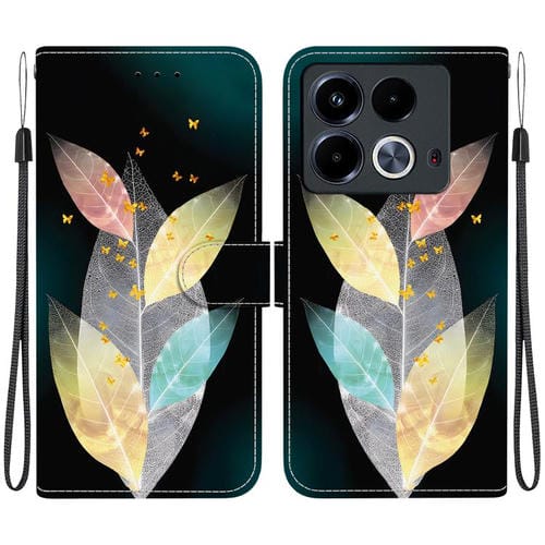 Funda de Cuero para Infinix Note 40 4G con Dibujo de Hojas de Colores y Textura de Cristal