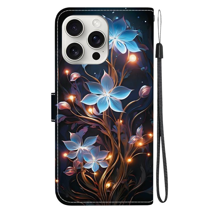 Funda de Cuero iPhone 16 Pro Dibujo Colores Textura Cristal Flor Linterna Pequeña