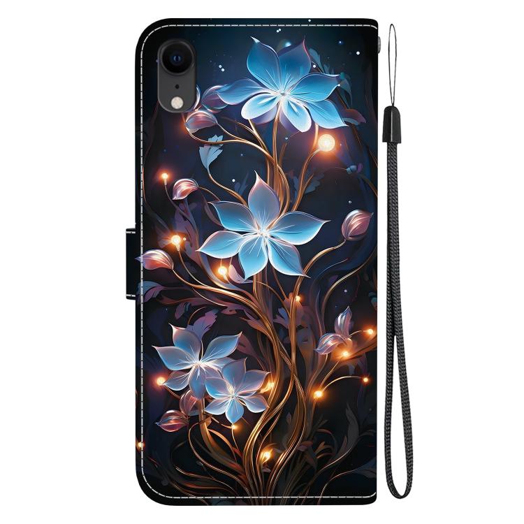 Funda de Cuero con Dibujo de Colores y Textura de Cristal para iPhone Xr (Flor de Linterna Pequeña)