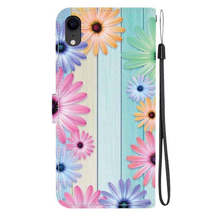 Funda de Cuero para iPhone Xr con Dibujo de Colores y Textura de Cristal (Girasoles)