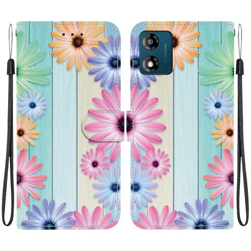 Funda de Cuero para Motorola Moto E13 con Dibujo de Girasoles y Textura de Cristal
