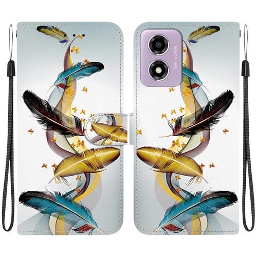 Funda de Cuero con Dibujo y Textura de Cristal para Motorola Moto G04S/E14 (Plumas de Mariposa Doradas)