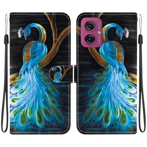 Funda de Cuero Motorola Moto G55 con Dibujo de Colores y Textura de Cristal (Pavo Real)